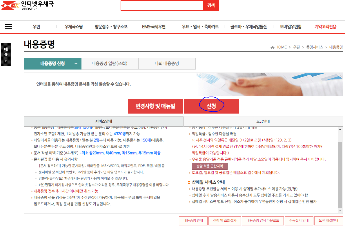 혹시 내용증명을 보내야 하는 경우가 있다면 힘들게 우체국까지 가서 접수할 필요없이 집에서 혹은 회사에서 편하게