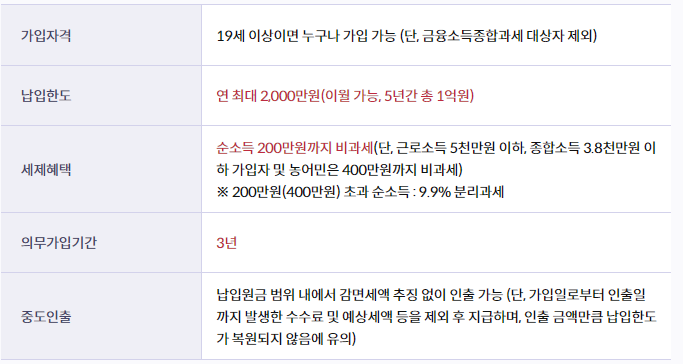 만약 3년 이상 유지하지 못할 경우에는 기존에 약속된 수익의 비과세(200만 원) 및 세금 혜택(분리과세 9.9%)을 받을 수가 없습니다.