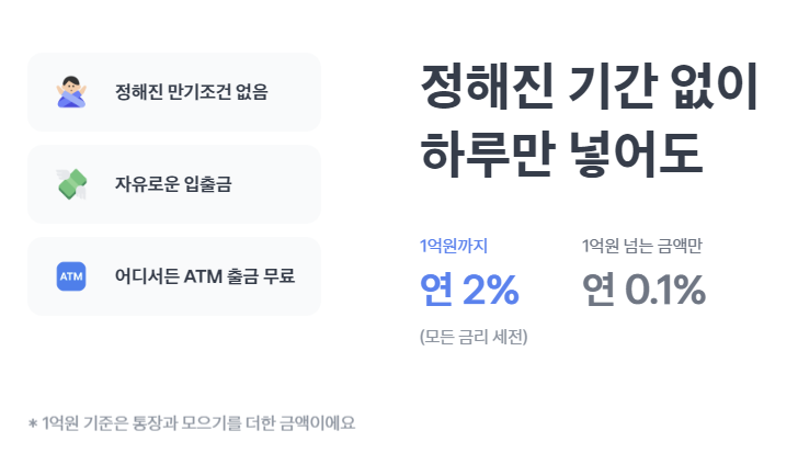 정해진 만기도 없고, 입출금도 자유롭고, 아무 ATM이던 출금 수수료가 없어요