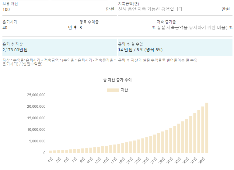 딱 100만 원으로 매년 8%씩 수익 40년 유지한다면 금액이 얼마가 될까요?