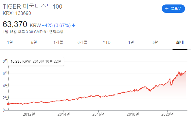 Tiger 미국 나스닥 100 ETF 10년간 주가 흐름